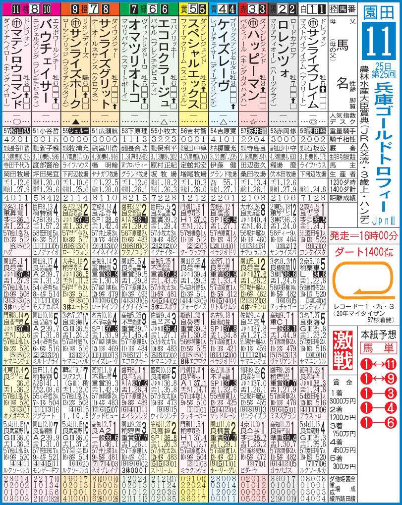 出走表公開!デスクの本命は武蔵野S4着サンライズフレイム/兵庫GT