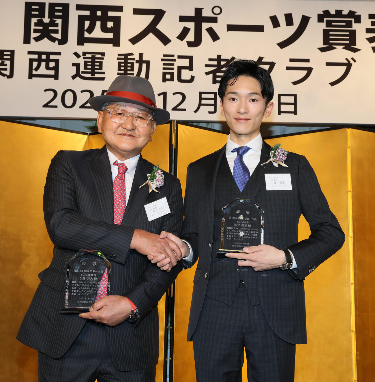 矢作師と坂井騎手が関西スポーツ賞受賞「フォーエバーヤングを連れてこられずすみません」
