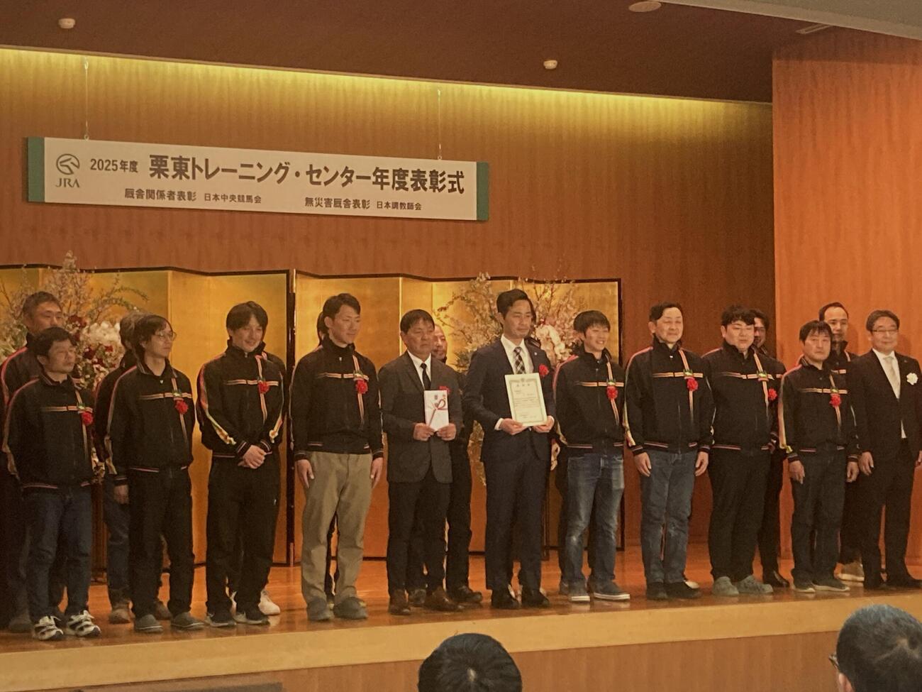 25年度栗東トレセン年度表彰式開催 優秀厩舎1位杉山晴師「馬と人が頑張った結果なのでうれしい」
