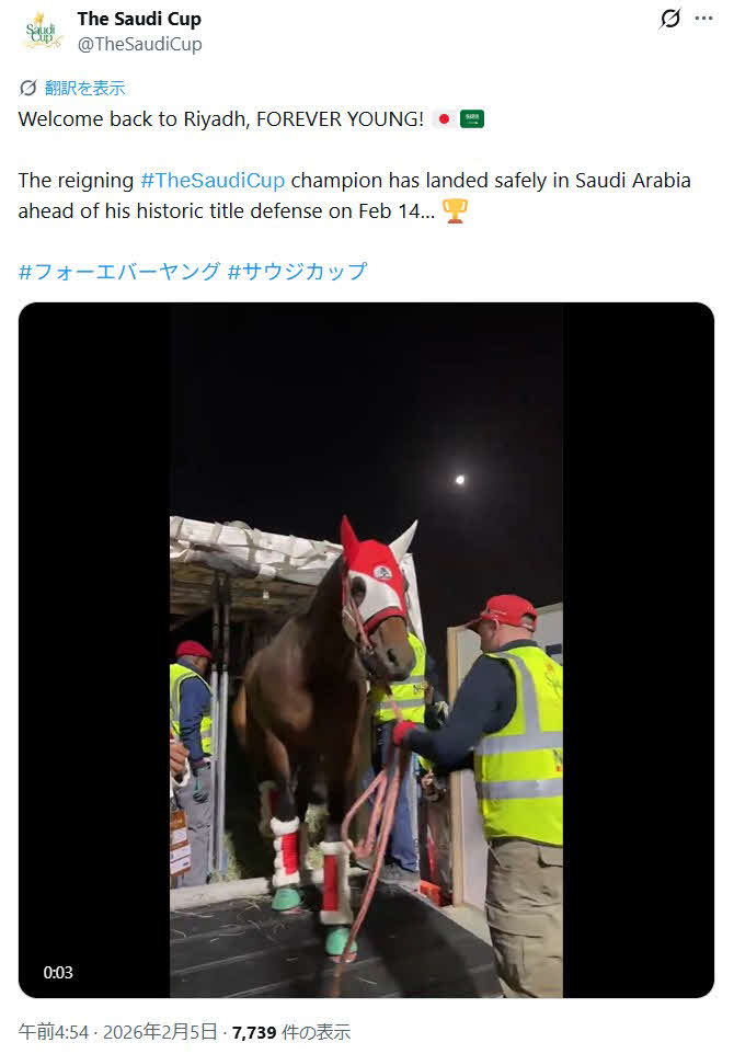 「歴史的な防衛戦を前にサウジアラビアへ」日本馬フォーエバーヤングの無事到着を主催者伝える