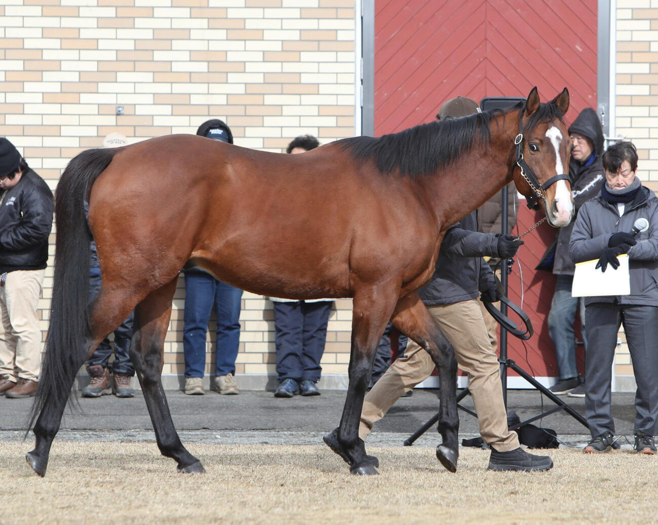 新種牡馬プログノーシスの応援で中内田師がマイク「とても扱いやすかったです」/種牡馬展示会
