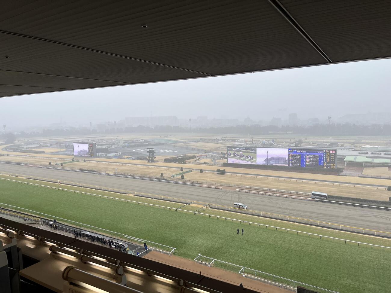 「芝の積雪の影響で滑る可能性があり、ゴーグルにも雪が付着し視界不良になると危険」JRA説明